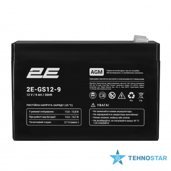 Тип: AGM /VRLA, Номінальна напруга: 12 В, Номінальна ємність: 9 А/год, Максимальний струм заряду: 2.5 А, Максимальний струм заряду: 2.5 А, Тип терміналів: F2, Максимальний струм розрядки: 102 А, Оптимальна робоча температура: 25°C±3°C, Саморозряд при 20°С (% за місяць): 3, Строк служби: 5 років, Колір: чорний, Вага: 2.55, Габарити, (ДхШхВ), мм: 65 x 151 x 94, Гарантія: 6