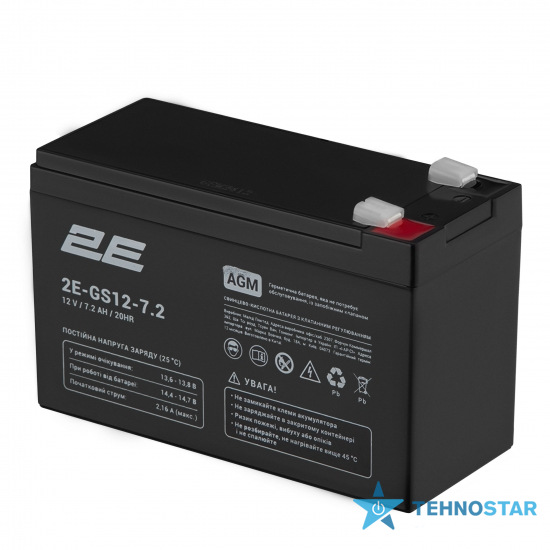 Особливості товару Акумуляторна батарея 2E GS, 12В, 7.2А•год, AGM