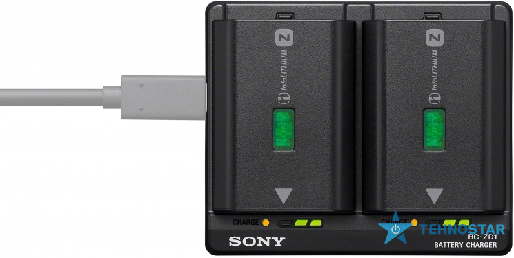 Зарядний пристрій Sony BC-ZD1B розроблений для заряджання акумуляторів NP-FZ100 через інтерфейс USB Power Delivery. Він дозволяє одночасно заряджати два акумулятори, що зручно під час інтенсивної фото- та відеозйомки. За умови підключення до USB PD-сумісного блока живлення потужністю від 30 Вт повний заряд досягається приблизно за 155 хвилин. Світлодіодні індикатори з п’ятьма рівнями інформують про стан заряду кожного акумулятора окремо. Компактний корпус із роз’ємом USB Type-C підходить для студійної та виїзної роботи.