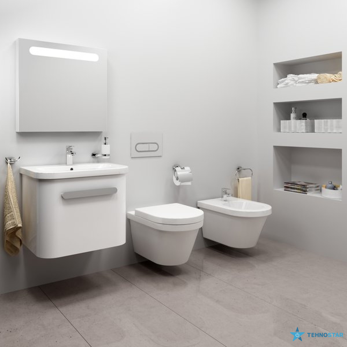 Ця модель — підвісна, тобто не торкається підлоги, що створює відчуття легкості простору і спрощує прибирання зони під ним. Біде виготовлено з високоякісної кераміки з гладким глянцевим покриттям, яке відштовхує забруднення й полегшує догляд — вистачить просто протирати вологою м’якою тканиною.