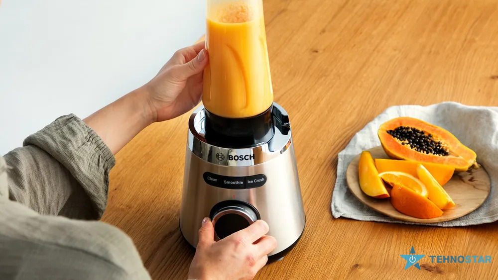 Bosch MMB6384M — потужний стаціонарний блендер, створений для приготування ідеально однорідних смузі, коктейлів, соусів та супів. Завдяки двигуну 1200 Вт і продуманій конструкції він легко справляється навіть із замороженими фруктами, твердими чи волокнистими інгредієнтами.