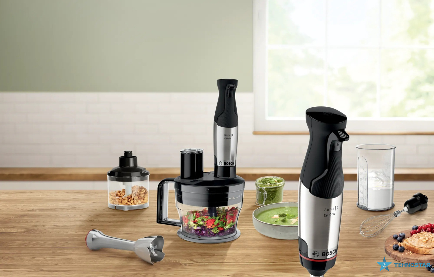 Bosch MSM6M871 – занурювальний блендер, який поєднує потужний двигун, ергономічний дизайн і багатофункціональність. Він ефективно змішує, збиває та подрібнює різні інгредієнти, забезпечуючи однорідну консистенцію супів, смузі, соусів та пюре.