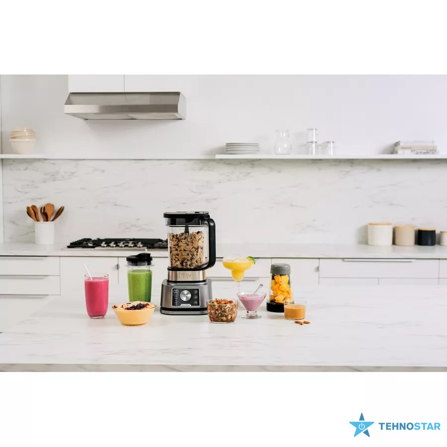Три чаші допоможуть організувати смачні мікси, десерти та намазки, а також заготівлі до найрізноманітніших страв. Блендер Ninja впорається навіть із горіхами та подарує вам ніжну рівномірну консистенцію улюблених паст та сорбетів. З інструментом для замішування тіста в комплекті ви приготуєте пухкі булочки та круасани. Також можете спокійно поєднувати льодяні та гарячі продукти в чаші.