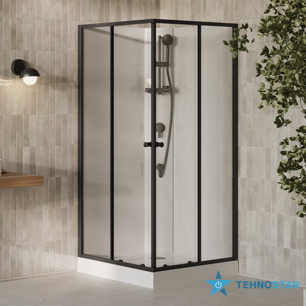 Ravak BOXSRV2-90 Чорний TRANSPARENT+(піддон+душ.панель+нерухома.стінка) X8F277C11Z1F