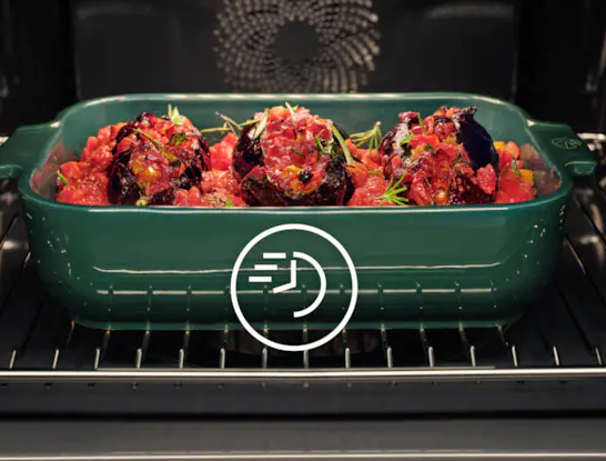 Функція допомоги при готуванні підказує найкращі налаштування для приготування найрізноманітніших страв. Ви можете увімкнути автоматичне регулювання роботи духової шафи або ж контролювати температуру й час готування самостійно.