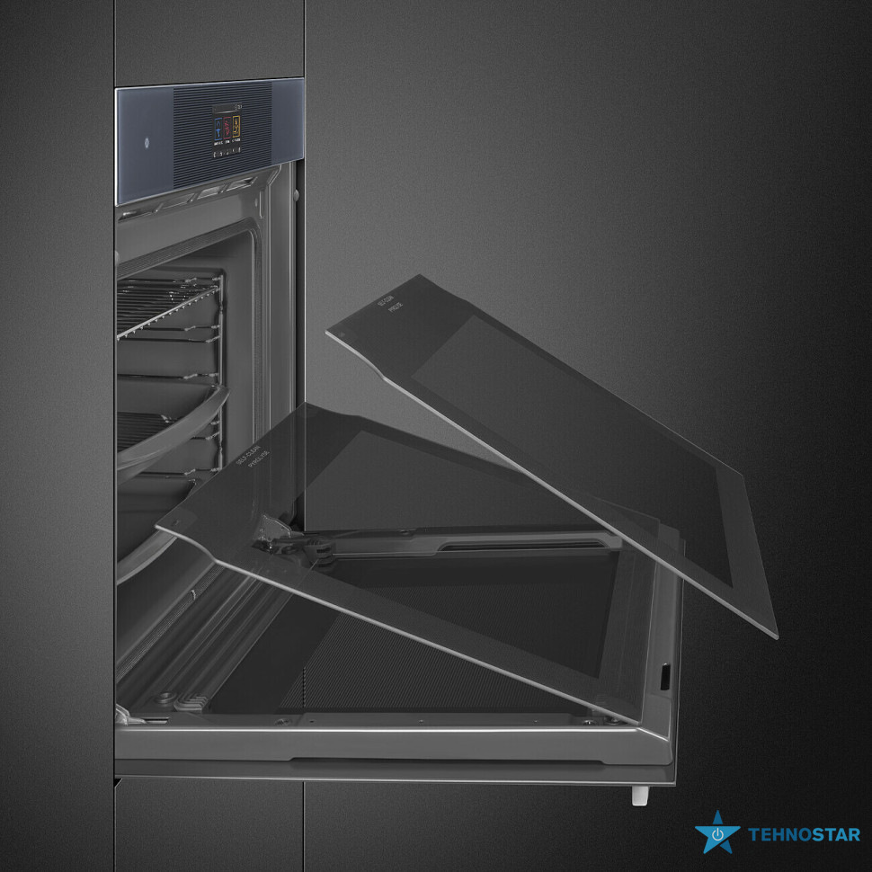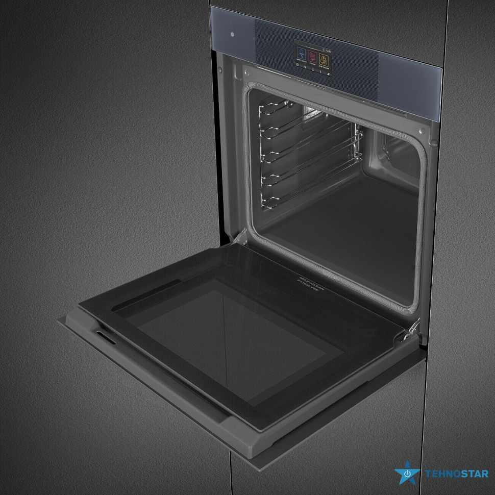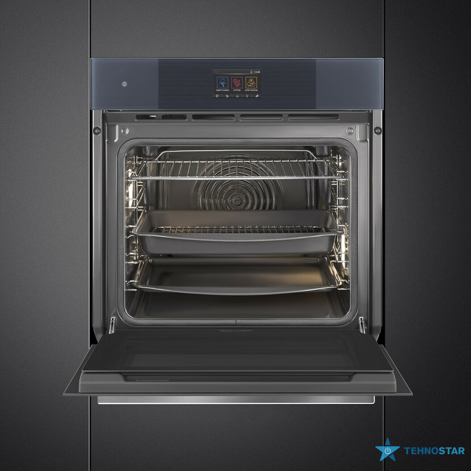 Smeg SOP6104TPG — це елегантний вбудований духова шафа лінійки Linea з матовим Neptune Gray оздобленням. Вона поєднує класичне париролізне очищення (до 500 °C) з інноваційними функціями: сенсорне TFT-управління, 150 автоматичних рецептів (Smartcooking), мультичасове приготування (Multistep, SameTime), а також опції Instant GO і DeltaT для точного приготування з використанням термощупа. Модель має безліч режимів приготування: від класичного статичного до турбо, пицці, аэрогри і навіть підняття тіста.
