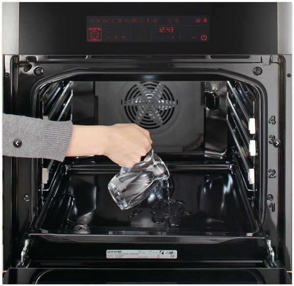 В модельном ряду, практически, любого производителя можно найти духовой шкаф с паровой очисткой. Для удаления загрязнений нужно налить в поддон немного воды с небольшим количеством специального моющего средства, закрыть дверцу и включить опцию очистки паром. Через некоторое время все загрязнения размягчаться, их можно будет легко удалить при помощи мягкой тряпочки. Обработка паром позволяет удалить самые даже самые стойкие загрязнения, в том числе пригоревшие частицы пищи, брызги сладких субстанций. Недостаток способа – большое количество ручной работы и обязательная сушка духовки после окончания мытья.
