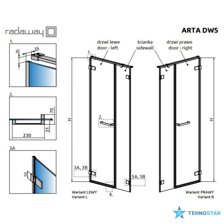 Душові двері Radaway Arta DWS 120 R праві, прозоре скло (386828-03-01R/386091-03-01R) це душові двері, які складаються з двох елементів, безпосередньо дверей та нерухомої стінки, відкриваються як назовні, так и у середину, універсальні, доступні у лівому та правому варіантах. Можливість монтажу без планки порогу.