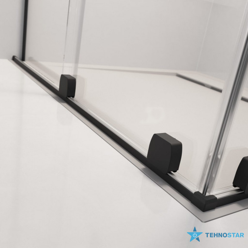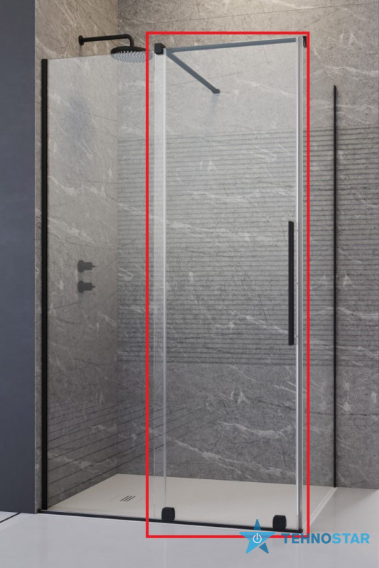 При відкриванні двері зміщується перед нерухомим скляним сегментом, забезпечуючи просторий та зручний вхід у душову зону.