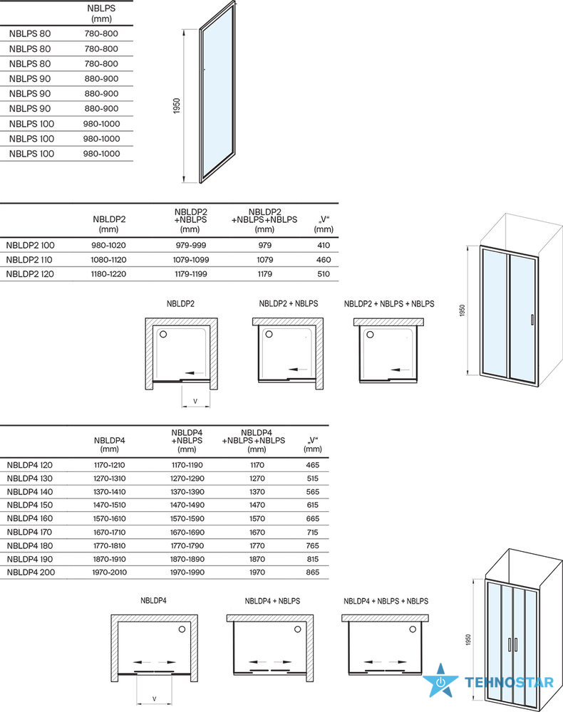 Виріб складається з однієї нерухомої частини. Встановлюється в облицьований кахлем кут ванної кімнати (в комбінації з душовими дверима BLDP2) на піддони RAVAK Perseus, Perseus Pro, Perseus Pro Flat, Perseus Pro Chrome, Perseus Pro 10°, Gigant Pro, Gigant Pro Flat, Gigant Pro Chrome, Gigant Pro 10° або безпосередньо на підлогу з вбудованим душовим каналом або трапом. Нерухома стінка не призначена для самостійного використання. Комбінація душових дверей і двох нерухомих стінок типу BLPS дозволяє створити "П"- подібну душову кабіну.