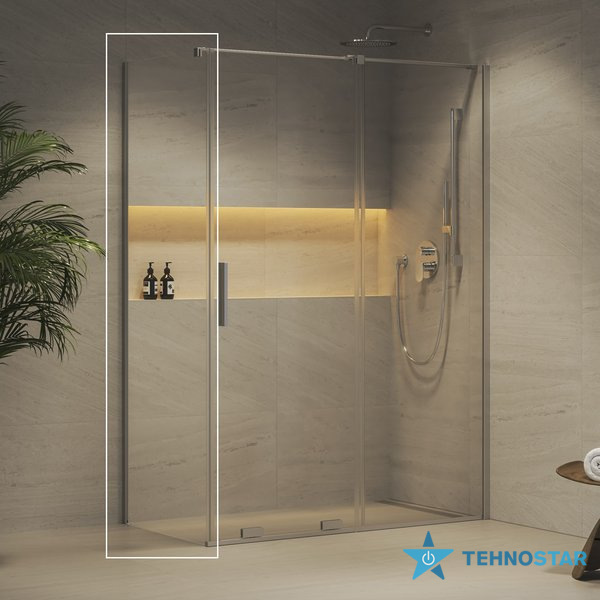 Повернувши виріб на 180°, ви отримаєте лівий або правий варіант. Монтується в облицьованому плиткою кутку ванної кімнати в поєднанні з душовими дверима RODP2 безпосередньо на підлогу з вбудованим зливом або трапом у підлозі, або на душові піддони Ravak Gigant, Gigant Pro та Gigant Pro Chrome.