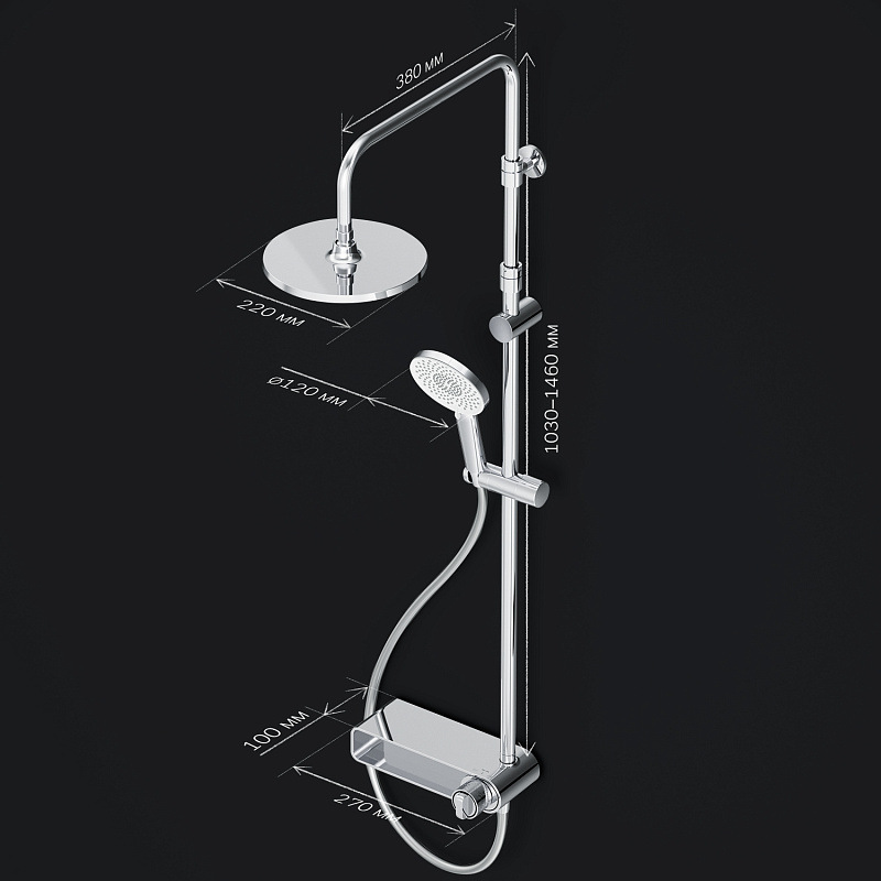 Телескопічна штанга з діапазоном регулювання 400 мм зробить процес прийняття душу зручним для людей будь-якого зросту. А завдяки збільшеним розмірам тропічного (220 мм) і ручного (120 мм) душів ви відчуєте всі переваги використання дизайнерського продукту.