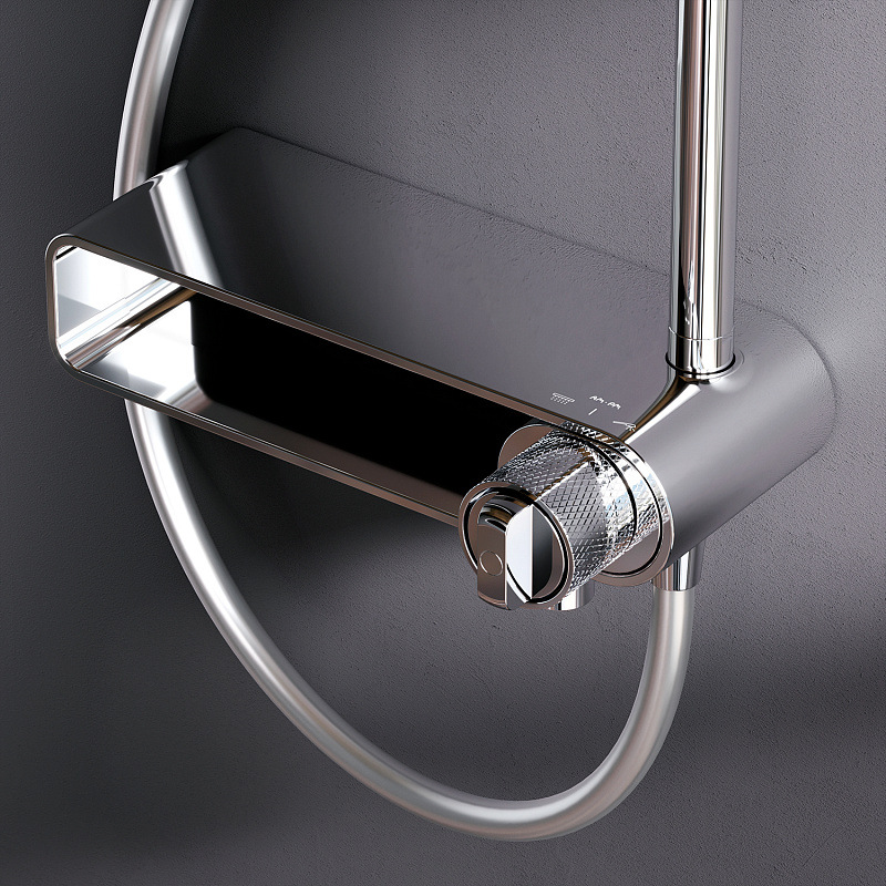 Змішувач у вигляді полички обладнаний додатковою нішею. Це ідеальне рішення для сучасної ванної кімнати, де найнеобхідніші речі завжди знаходяться під рукою.