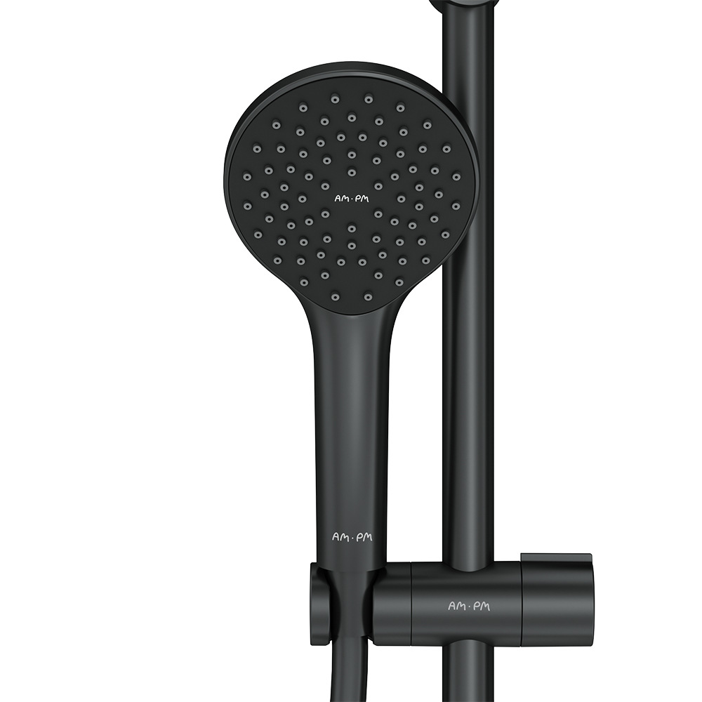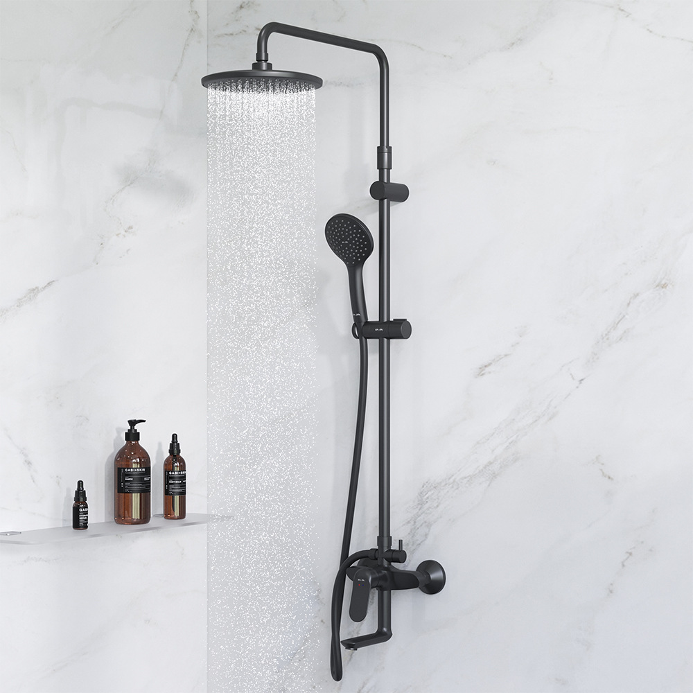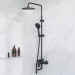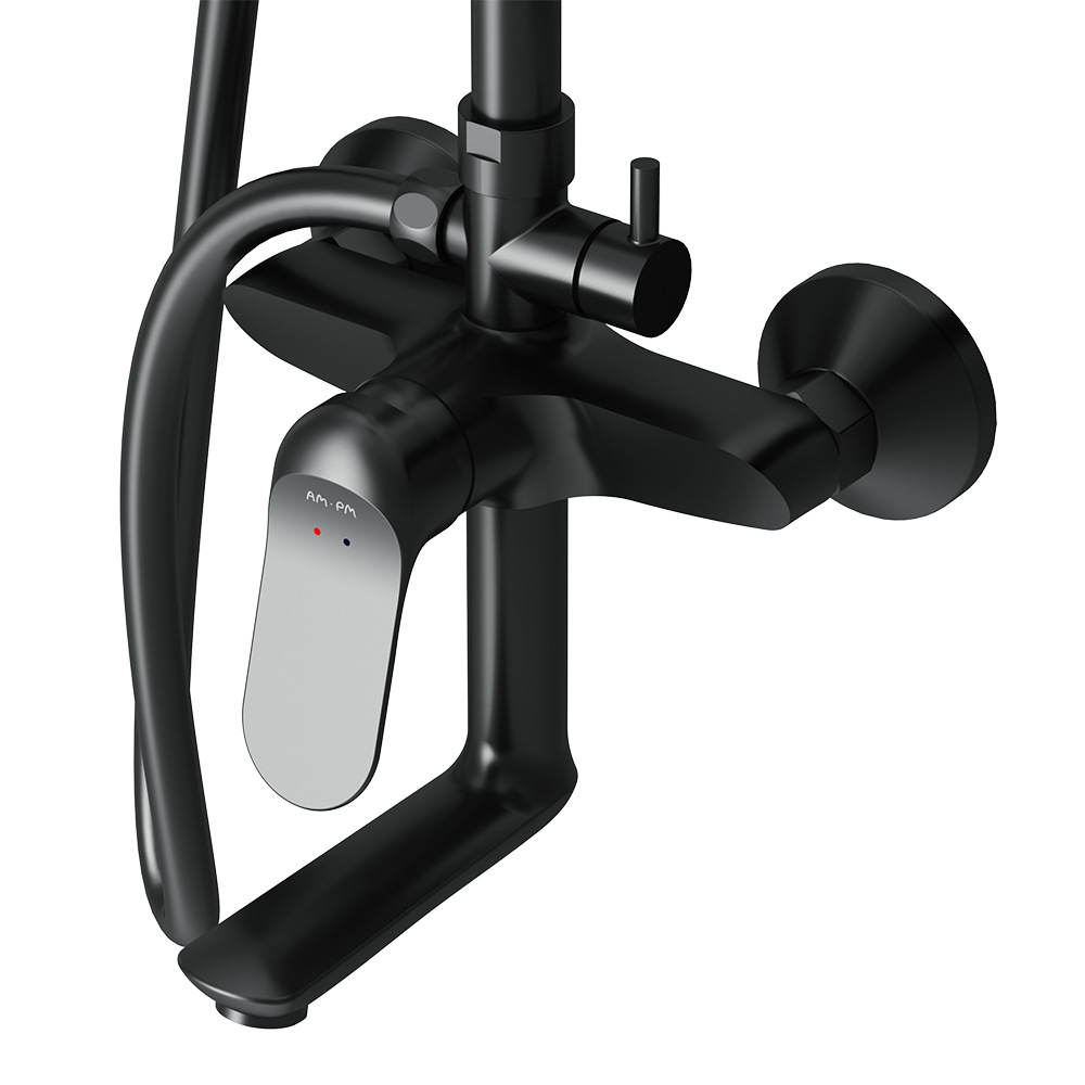 Чорний колір якнайкраще підкреслює витонченість силуетів змішувача і душової системи, додаючи розкіш інтер'єру ванної кімнати.