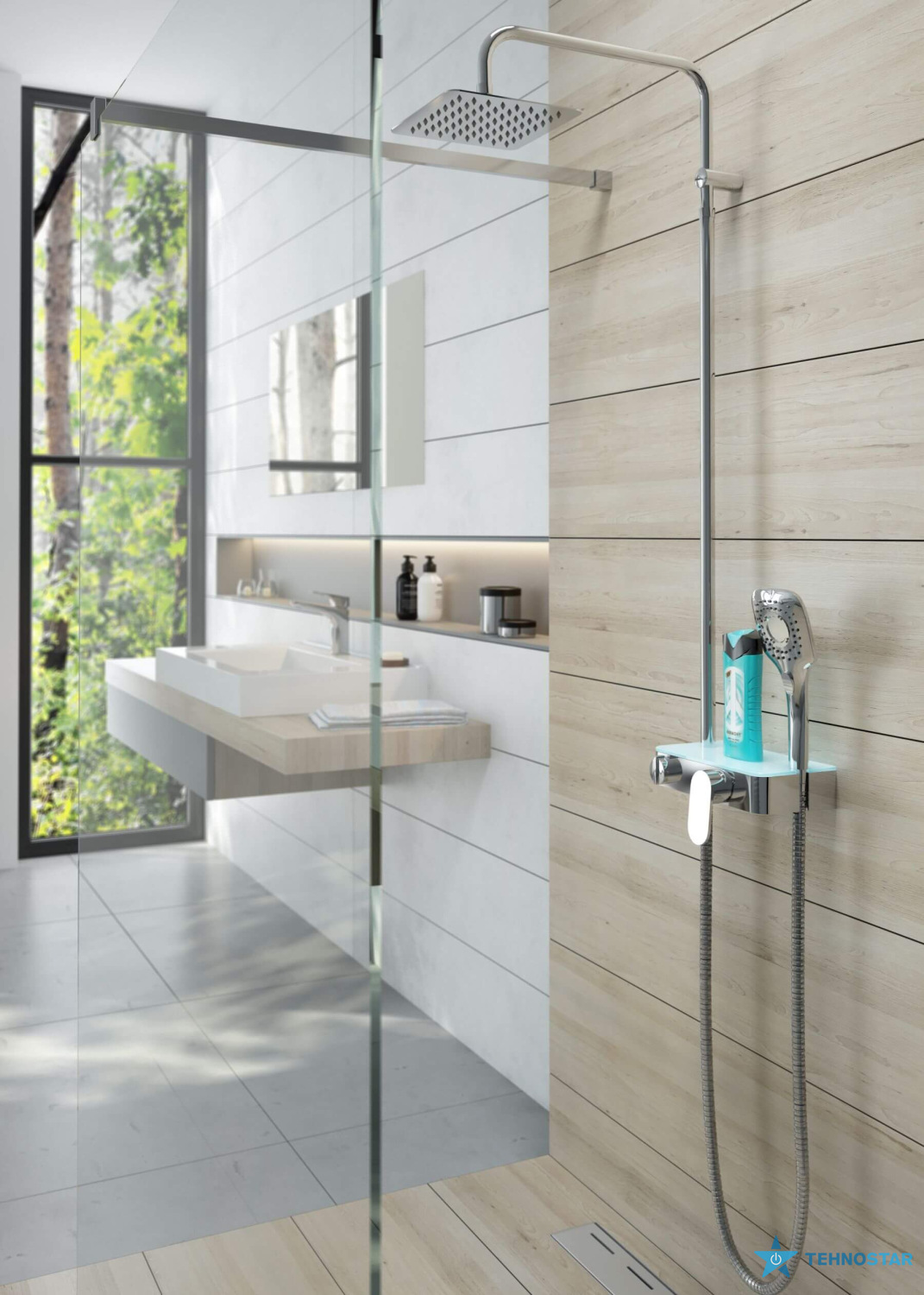 Deante Lobelia NAC 01WM — це настінна душова система зі змішувачем і верхнім душем у стильному хромованому виконанні, яка призначена для комфортного щоденного використання в душовій кабіні або над ванною.