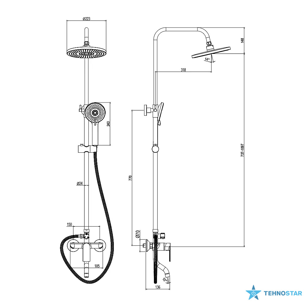 Модель оснащена верхнім душем, ручним душем, змішувачем та виливом для ванни, що дозволяє легко перемикатися між режимами та отримувати комфорт у щоденному використанні. Латунна основа гарантує міцність конструкції, а якісні комплектуючі забезпечують стабільну роботу системи.
