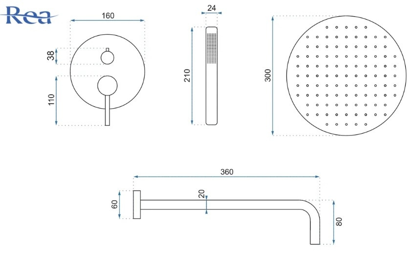Душовий гарнітур REA Lungo Gold Мати + box (REA-P4160)