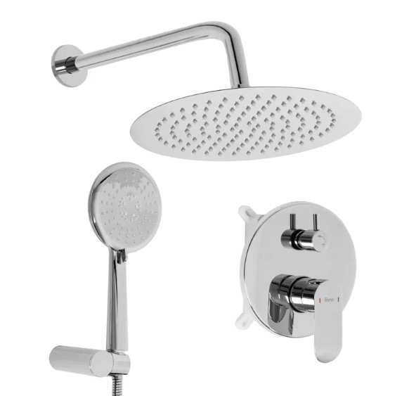 Тип гарнітуру: душовий набір, Тип монтажу: настінний, К-ть режимів лійки: 1, Матеріал: нержавіюча сталь, Форма верхнього душу: кругла, Технології (особливості): верхній душ: є, ручний душ: є, скляна поличка: немає, smart control: немає, термостат: немає