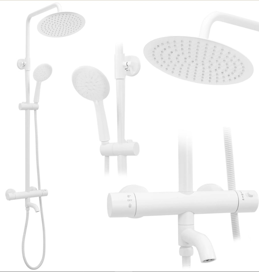 Тип гарнітуру: душовий набір, Тип монтажу: прихований, Матеріал: латунь, Форма верхнього душу: квадратна, Технології (особливості): верхній душ: є, ручний душ: є, ручний душ: є, скляна поличка: є, smart control: немає, термостат: є, вилив: є, Країна виробник: Польща , Гарантія, міс: 12