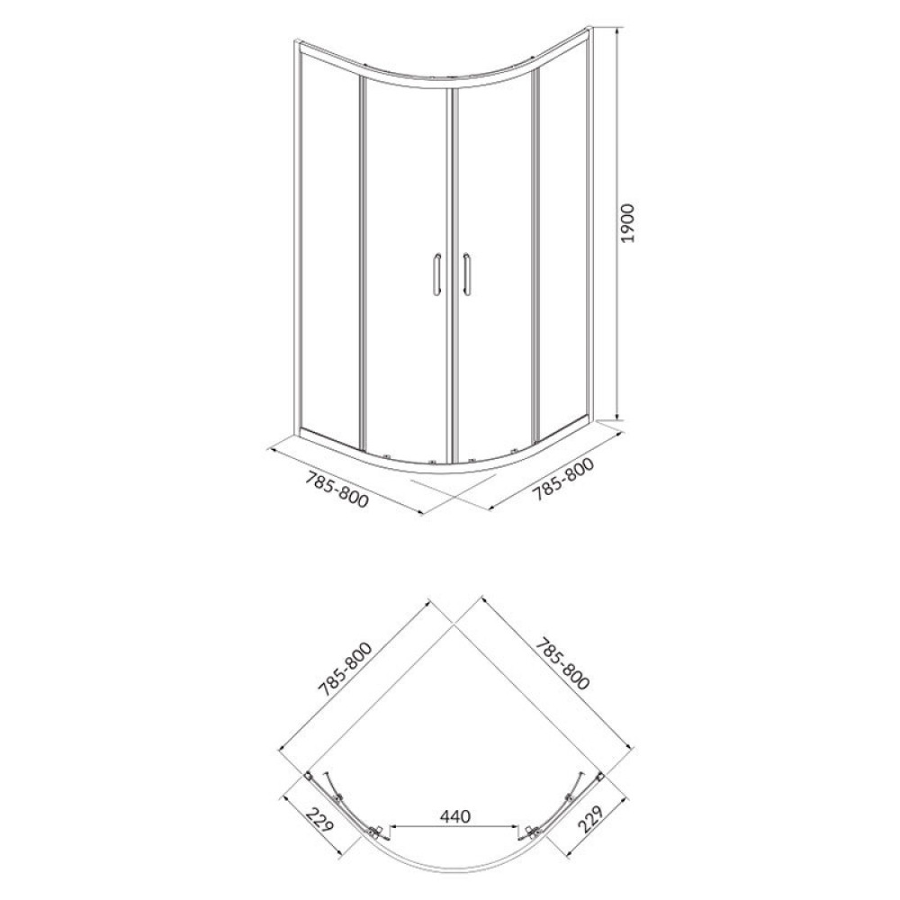 Душова напівкругла кабіна BRASCO 80 х 80 х 190
