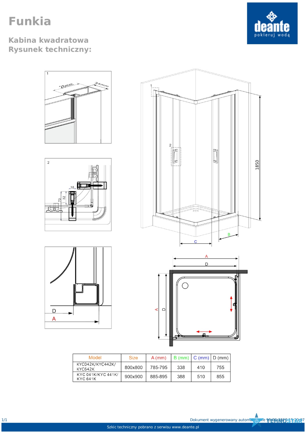 Deante Funkia KYC_N41K — це душова кабіна кутового типу, призначена для встановлення у кут ванної кімнати. Модель виконана в сучасному дизайні з чорним профілем та прозорим склом, що гармонійно підходить до сучасних інтер’єрів ванної кімнати.