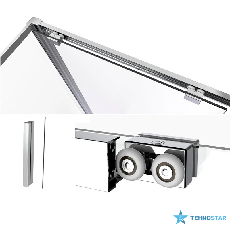 Душова кабіна Dusel DSL191+195 Chrome, прямокутна, має одні розсувні двері на металевих подвійних роликах у колір профілю. Встановити розсувні двері можна як ліворуч, так і праворуч.