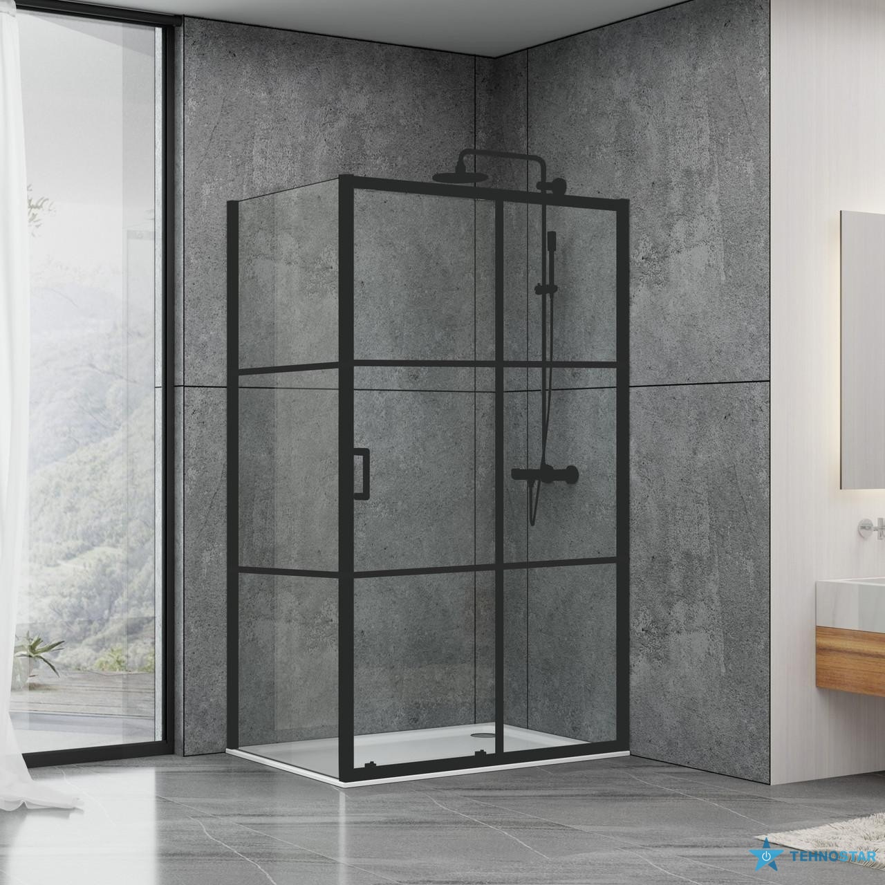 Душевая кабина Dusel EF185BP+EF181BP Black Matt, прямоугольная, имеет одну раздвижную дверь на металлических двойных роликах в цвет профиля. Установить раздвижную дверь можно как слева, так и справа.