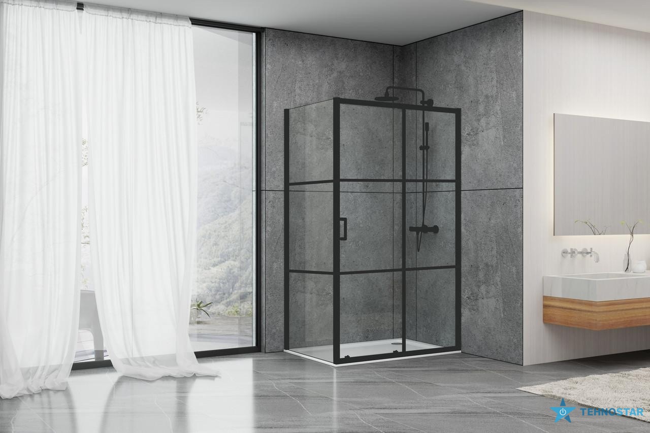 Профиль душевой кабины Dusel EF185BP+EF181BP Black Matt черный, матовый, сделан из алюминия. Стекло каленое в толщине 6 мм.