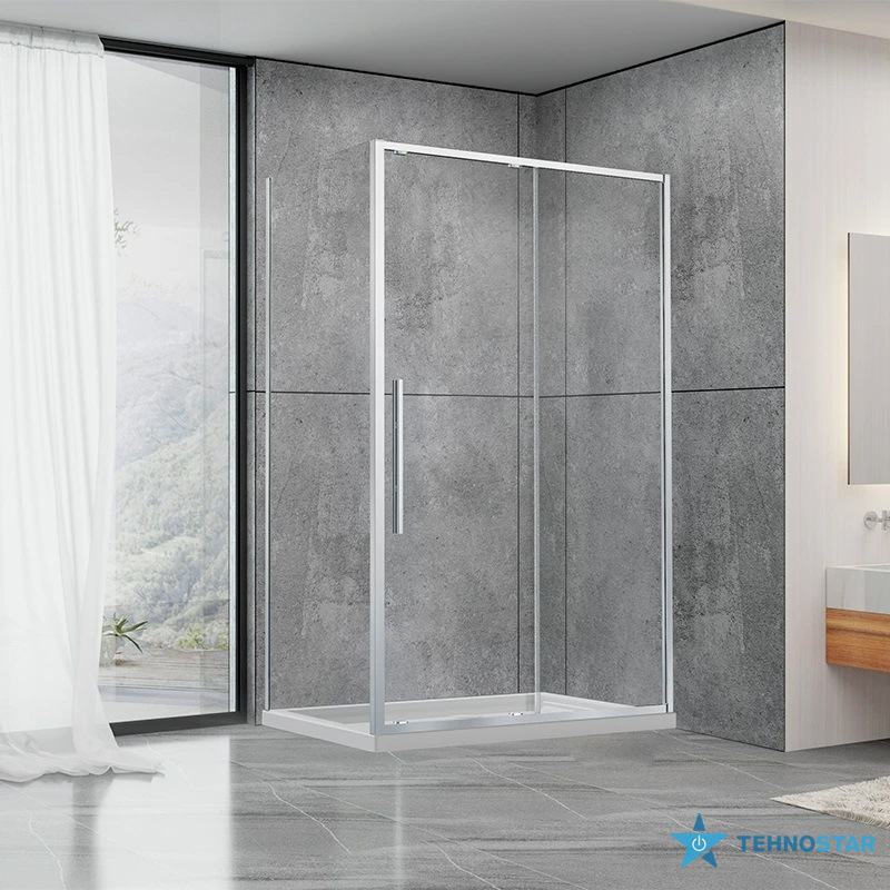 Форма: прямокутна, Матеріал вітражу: загартоване скло, Колір профілю: хром, Тип відкриття дверей: розсувні, Наявність піддону: немає, Габарити, см: ширина: 80, глибина: 120, висота: 190