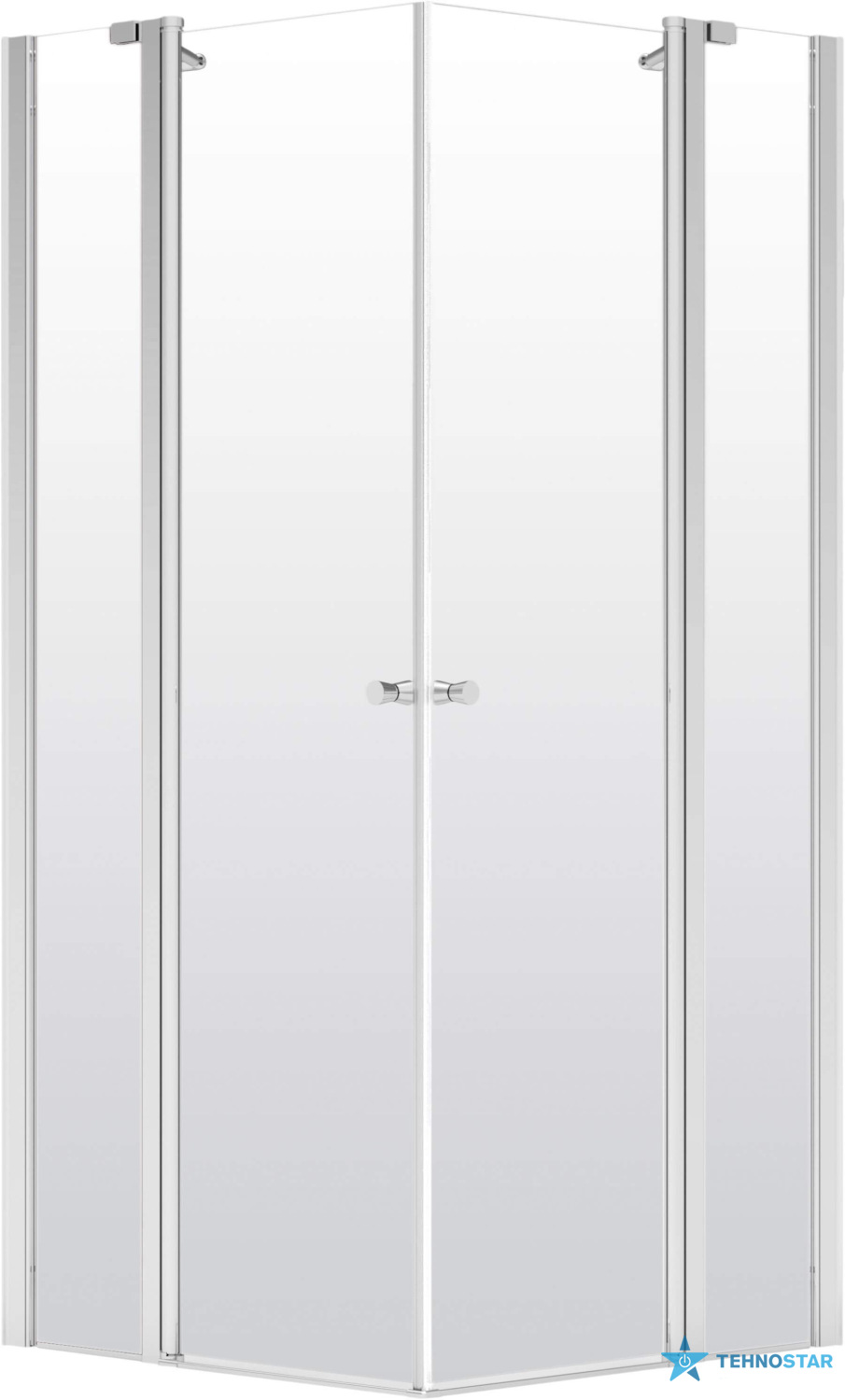 Форма: квадратна, Матеріал вітражу: загартоване скло, Колір профілю: хром, Тип відкриття дверей: розпашні, Наявність піддону: немає, Габарити, см: ширина: 80, глибина: 80, висота: 195