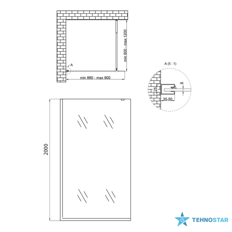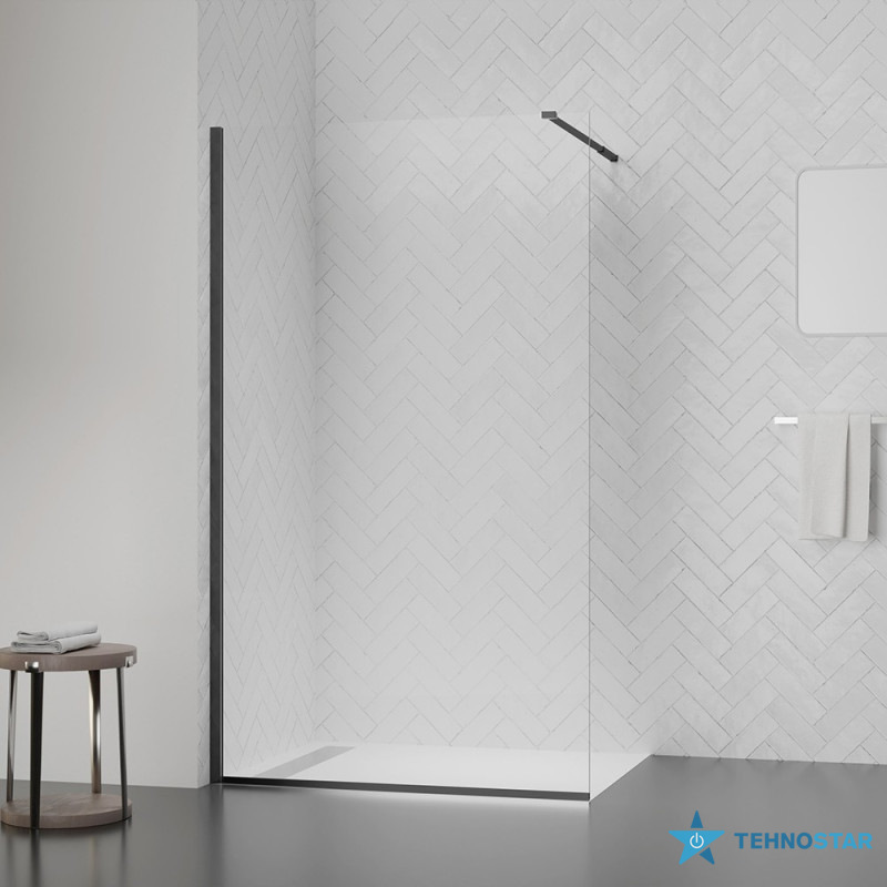 Душова перегородка Qtap Walk-In Standard BLM209.C8 виготовлена з високоміцного скла та алюмінієвого профілю з чорнім покриттям. Товщина скла складає 8 мм. Орієнтація виробу універсальна. Конструкція має регульовану ширину і легко монтується. Така перегородка дозволить розмежувати зони санвузла та вбереже кімнату від зайвої вологи. Виріб може монтуватись як на підлогу, так і на піддон.