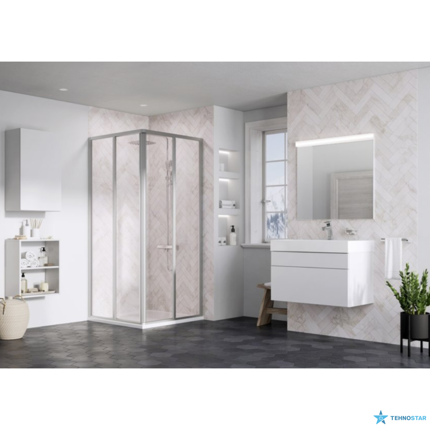 Виріб встановлюється в облицьований кахлями кут ванної кімнати на піддони Ravak Aneta, Angela, Perseus, Perseus Pro, Perseus Pro Flat, Perseus Pro Chrome, Perseus Pro 10°, Gigant Pro, Gigant Pro Flat, Gigant Pro Chrome Gigant Pro 10° або на підлогу з вбудованим душовим каналом чи трапом.