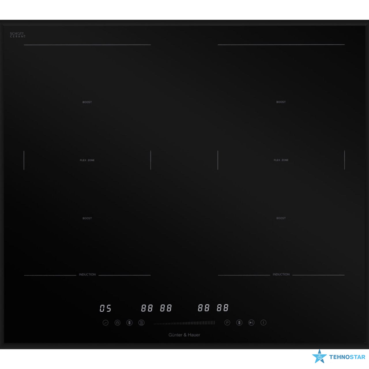 Тип нагревательных элементов: индукционные, Габарити, см: висота: 5.5, ширина: 58, глибина: 51, Количество конфорок: 4, Управление: сенсорное, Функции: таймер: есть, автоотключение: есть, защита от детей: есть, защита от перегрева: есть, защита от перелива: нет, распознавание наличия посуды: есть, автоматичеcкая функция закипания: нет, поддержка точной температуры: нет, функция интенсивного нагрева: нет, звуковой сигнал: нет, индикатор остаточного тепла: есть, турбо-режим (booster): нет, stop&go: нет, Цвет: чёрный, Тип: независимые стеклокерамические