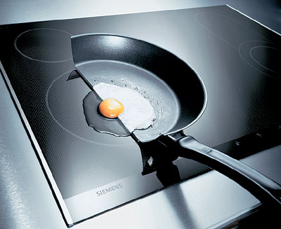 • Индукционные. Индукционная варочная панель Siemens нагревается за счет мощного электрогенератора и катушки индуктивности, которые расположены под каждой конфоркой. Они создают мощное электромагнитное поле. Электромагнитные волны греют не стеклокерамическую поверхность, а непосредственно дно посуды. За счет этого экономится и время, необходимое на приготовление еды, и электроэнергия. Тем, кто решил купить варочную поверхность Siemens индукционного типа, нужно учитывать, что для приготовления придется использовать только ту посуду, которая обладает ферромагнитными свойствами: стальную или чугунную.