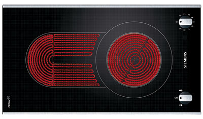 У большинства электрических варочных поверхностей Siemens – независимый тип установки. Это дает возможность спроектировать установку кухонной техники так, как будет удобно хозяйке. Например, поставить духовку не под варочной панелью, а вынести ее на уровень столешницы. Стеклокерамические варочные панели Siemens различаются по типу нагрева конфорки.