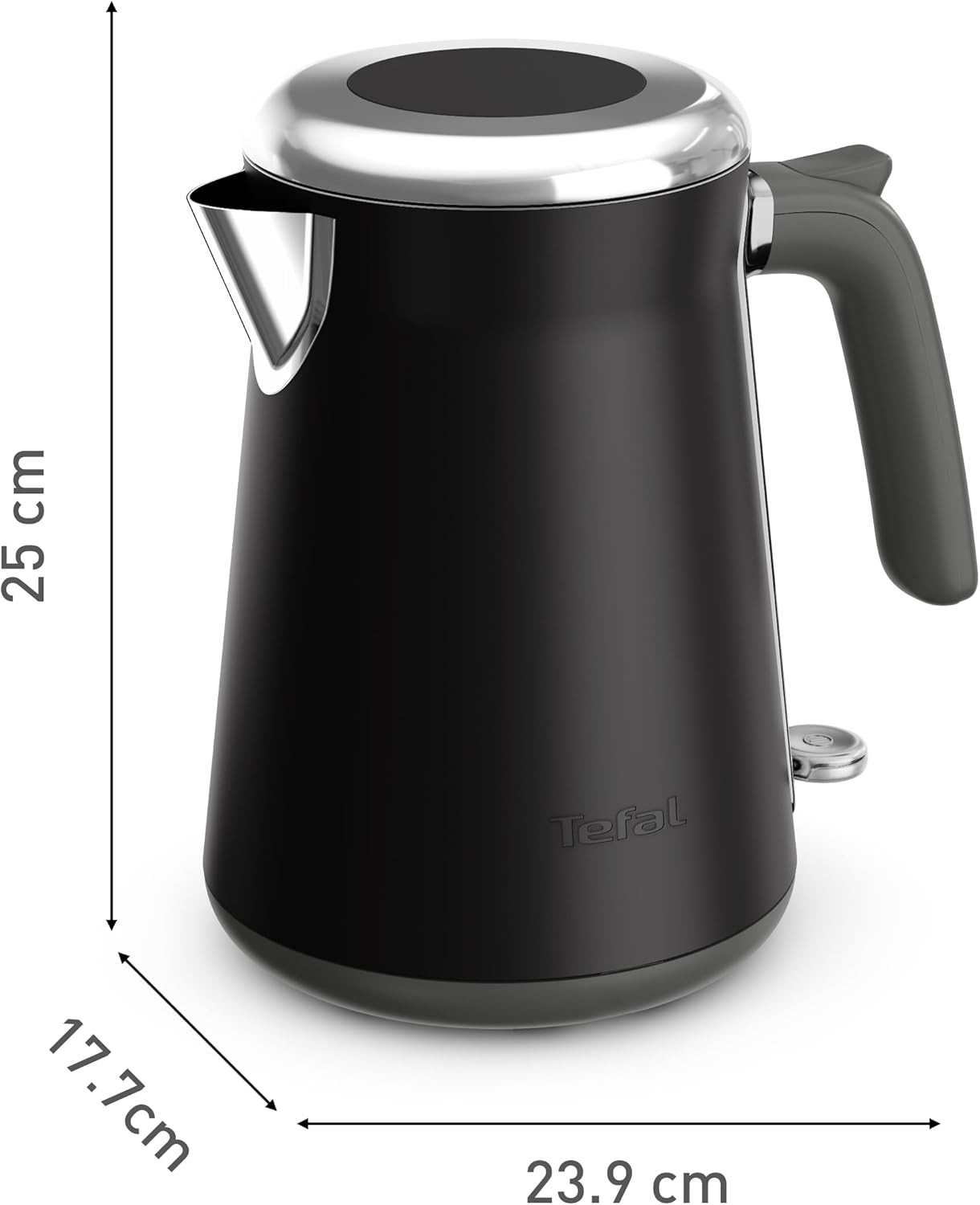 Фільтр від накипу легко знімати та мити, що забезпечує чисту воду та подовжує термін служби пристрою. Підставка на 360° та відсік для шнура додають зручності в зберіганні. Розміри 25×17,7×23,9 см і вага 1,17 кг — оптимальні для щоденного використання.