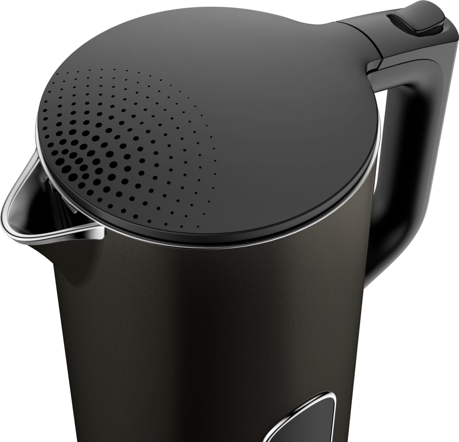 Двошарова конструкція чайника залишається прохолодною на дотик, що забезпечує повну безпеку та спокій.