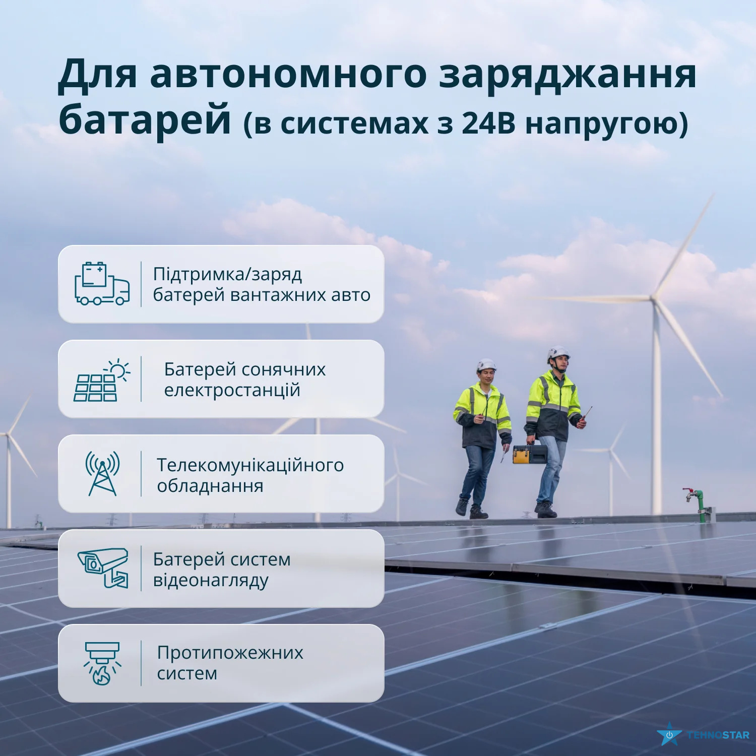 Konner Sohnen KS 24VGS-DC — це генератор постійної напруги від Konner & Sohnen, спроектований для заряджання акумуляторів на 24–27 В (DC). Модель підтримує два види палива — бензин та LPG (газ), що дає гнучкість у використанні й економію. Генератор має автоматичний режим заряджання: запускається, коли напруга на акумуляторі падає, і вимикається, коли зарядка завершена. Також є ручний або зовнішній (через “сухі контакти”) режим запуску. Корпус із шумоізоляцією знижує рівень шуму під час роботи. Зручний для систем сонячної енергетики, телекомунікацій, відеоспостереження чи зарядки батарей авто.