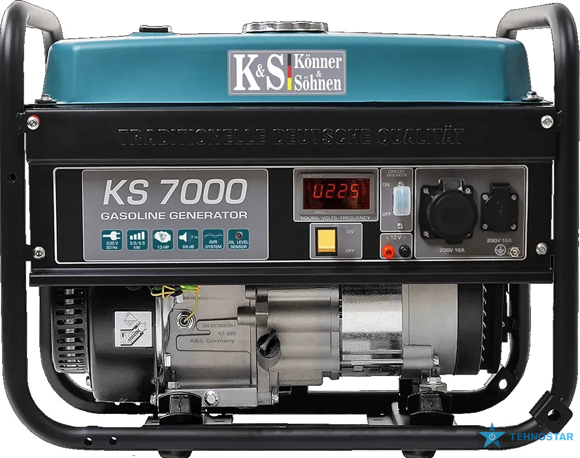 Тип двигуна: 4-тактний, Потужність, кВт: 8.2, Напруга, В: 230 / 400, Тип запуску: електричний / ручний, Кількість фаз: 1/3, Виконання: відкрите, Об'єм паливного баку, л: 55, Витрати палива, л/год: 0.38, Країна виробник: Німеччина