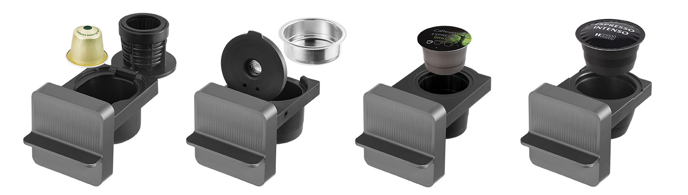 Подвійна система заварювання — робота з капсулами (через змінні адаптери) і меленою кавою