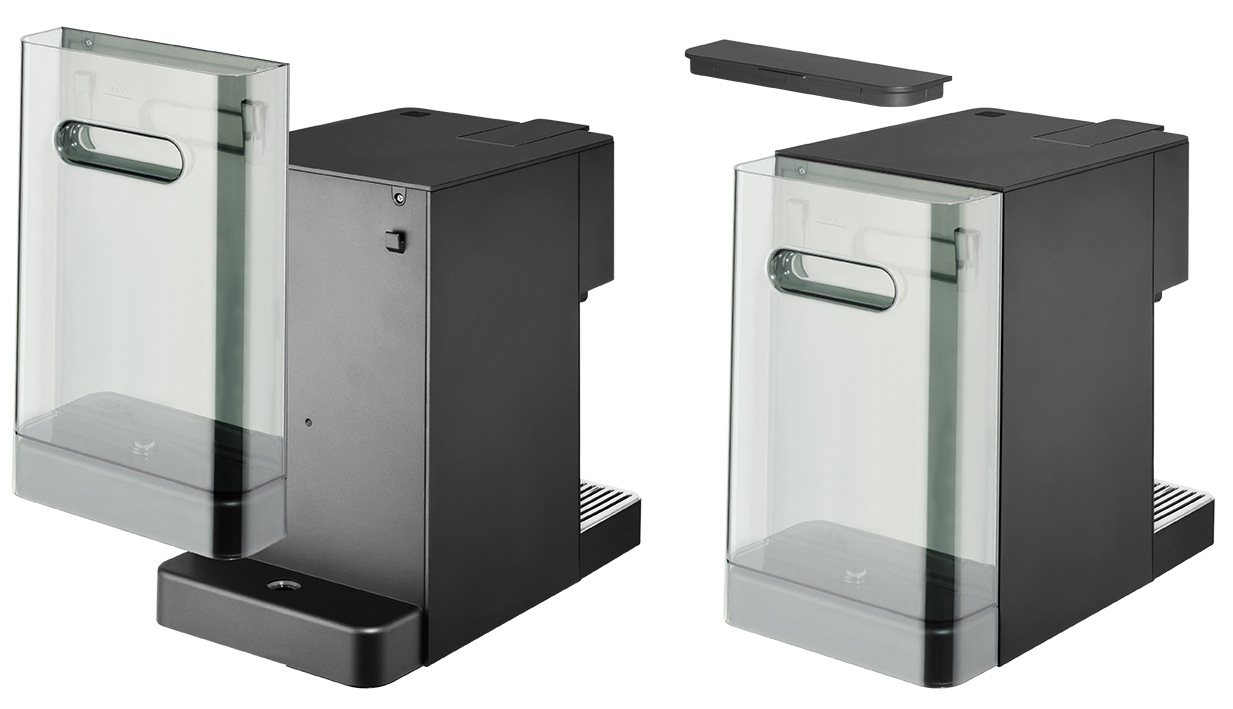 Конструкція орієнтована на просте обслуговування: знімні ємності (водяний бак, контейнер для молока) полегшують наповнення та гігієну, піддон для крапель виймається для очищення. Органи керування зосереджені на фронтальній панелі поруч із дисплеєм. Потужність 1150–1350 Вт забезпечує швидкий вихід на робочу температуру та стабільність циклу приготування.