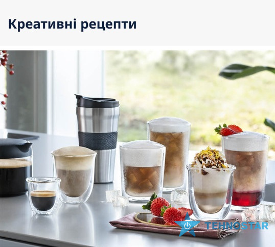 А це вже ті самі коктейлі з пінкою, улюбленою для багатьох! Прилад оснащений автоматичним капучинатором і може готувати гаряче молоко, латте, макіято або капучино, а також створювати коктейлі відповідно до ваших персональних налаштувань. Керування через стандартне меню. Додаткові параметри не потрібні.