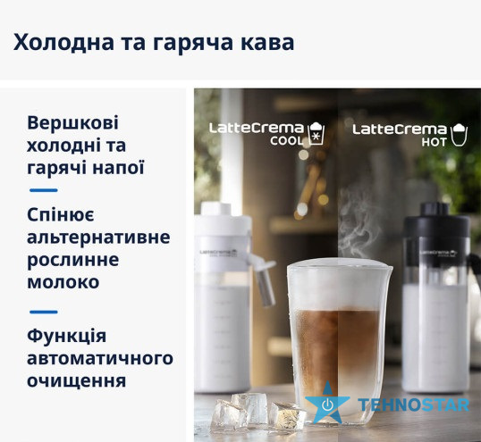 У цій моделі використовується новітній пульт керування із сенсорними клавішами та кольоровим дисплеєм (TFT). Дуже зручний та з інтуїтивно зрозумілим інтерфейсом. Замовити напої можна одним рухом пальця. Передбачено три основні системи приготування: LatteCrema System, LatteCrema Hot, LatteCrema Cool. Відповідно, класичне еспресо може бути подане навіть трохи охолодженим. Сервісний функціонал цілком стандартний – автоочищення, автовимкнення при простої, режим видалення накипу (докладніше описаний в інструкції, що додається).