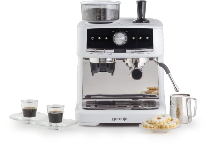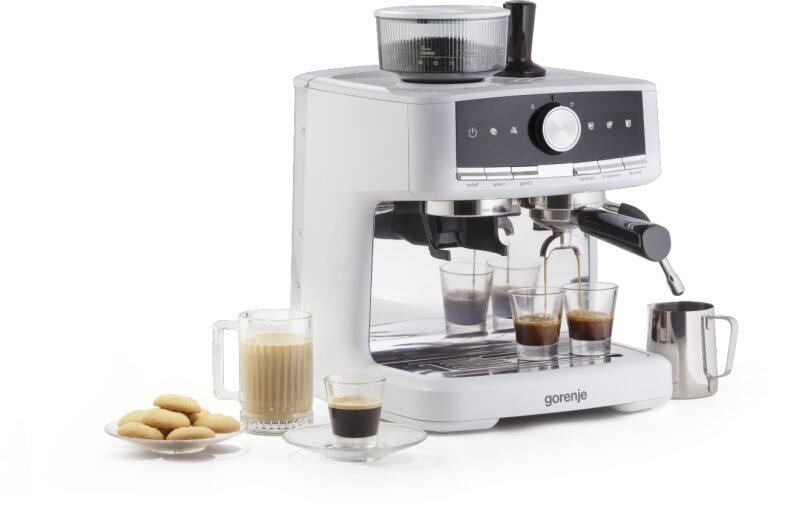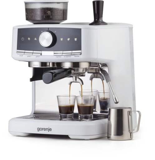 Кавоварка Gorenje GSACM20W — практична ріжкова модель з кавомолкою, тиском 20 бар і капучинатором для еспресо та молочних напоїв. Чудовий вибір для домашнього використання з автоматичним дозуванням і приготуванням 2 чашок одночасно. Один з доступних варіантів Gorenje 2025–2026 років для любителів свіжої кави.