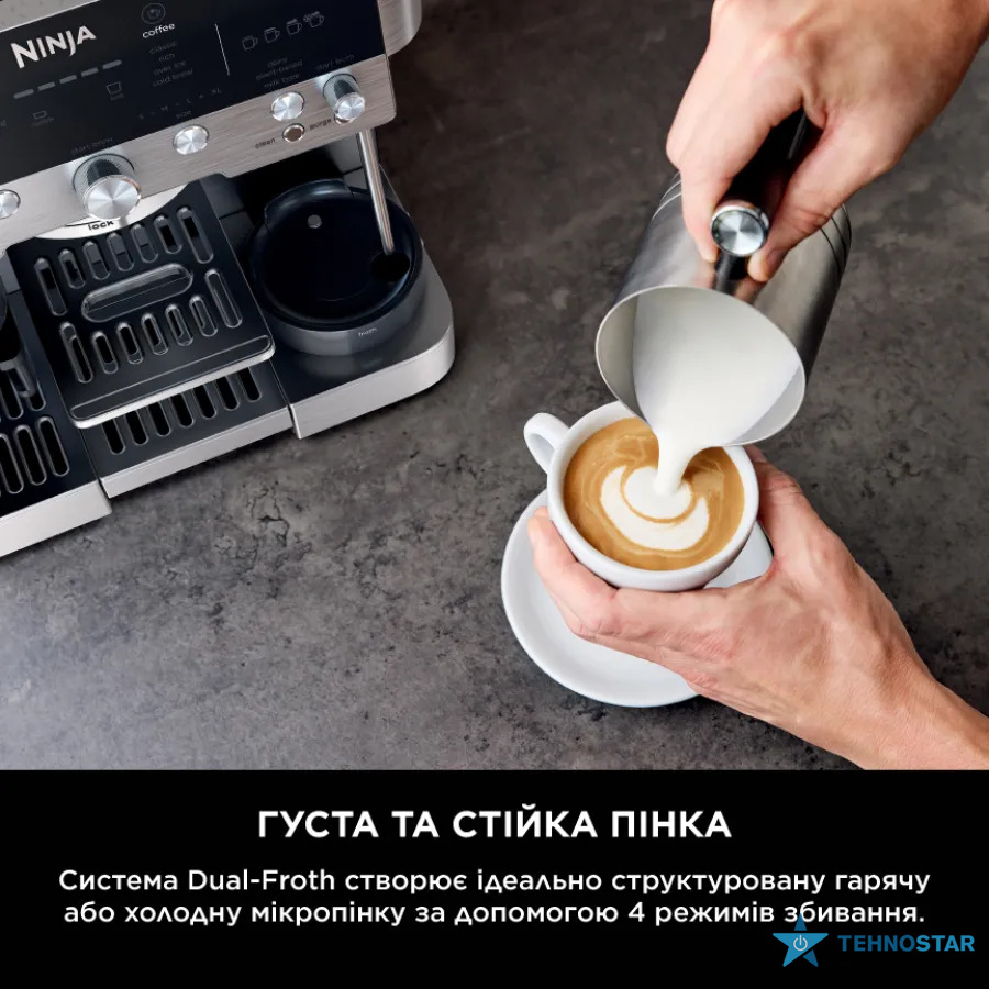 Ninja ES601EU — це три професійні пристрої в одному корпусі: еспресо-машина, кавомолка та система збивання молока.