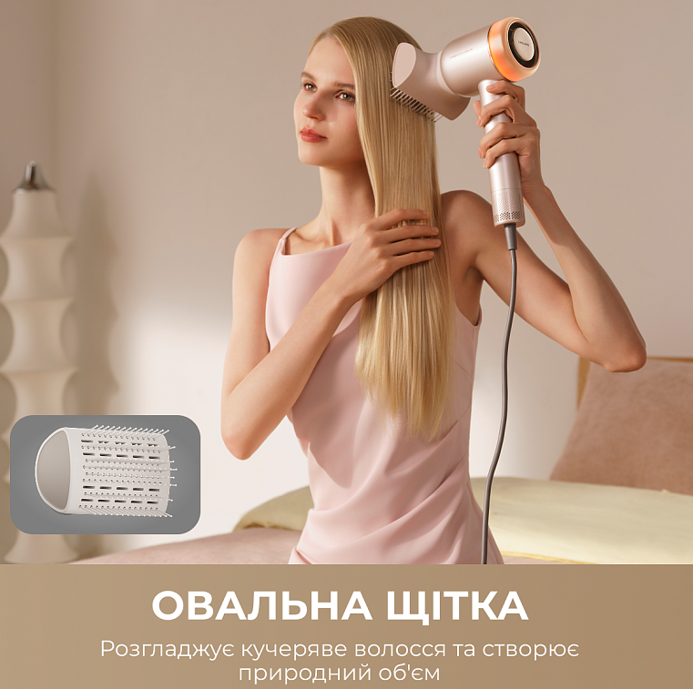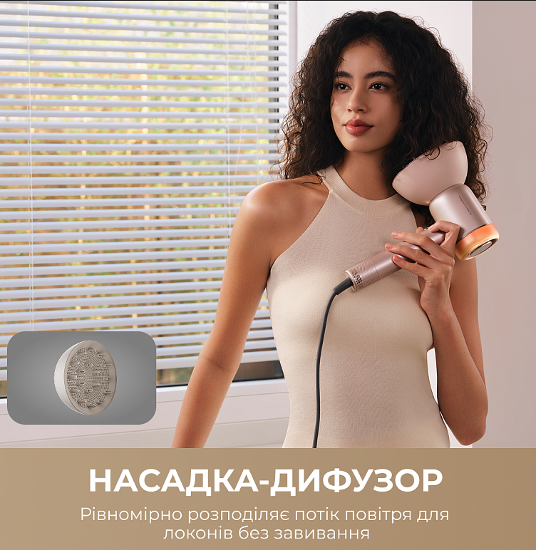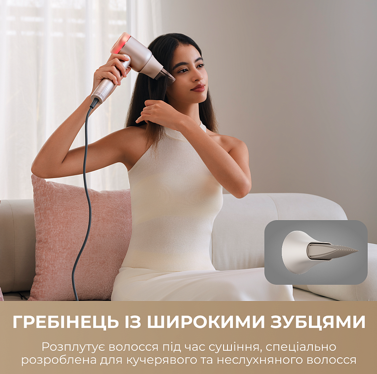 Контролює температуру повітряного потоку, щоб запобігти перегріву та захистити волосся.