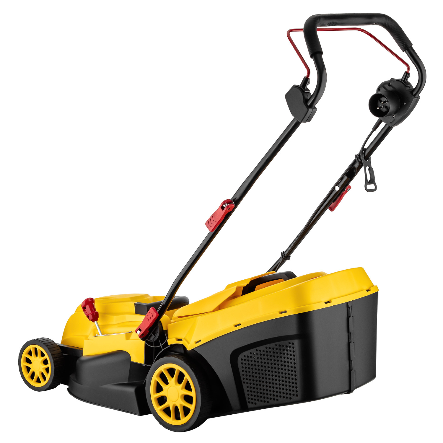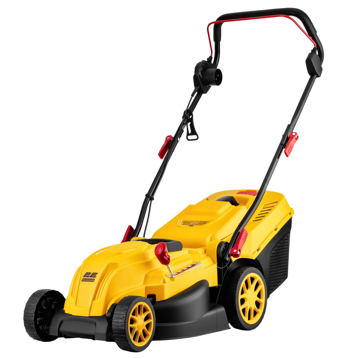 Газонокосарка 2E GardenCut 38 – електрична модель для регулярного догляду за газоном на ділянках площею 250–500 м². Щітковий двигун потужністю 1 600 Вт працює від мережі 220–240 В і забезпечує стабільну роботу із чистим і рівним зрізом завдяки швидкості обертання ножа 3 450 об/хв. Ширина скошування 38 см зумовлює можливість ефективно обробляти газон, гарантуючи зручне маневрування між клумбами, деревами та вздовж доріжок. Модель має п’ять рівнів регулювання висоти скошування в діапазоні 25–75 мм і підтримує функцію мульчування, що сприяє природному удобренню газону. Конструкцією передбачено знімний пластиковий травозбірник об’ємом 40 л. Корпус з ударостійкого пластику, знімне руків’я, вага 12,7 кг і клас захисту II роблять газонокосарку зручною під час використання, транспортування та зберігання.