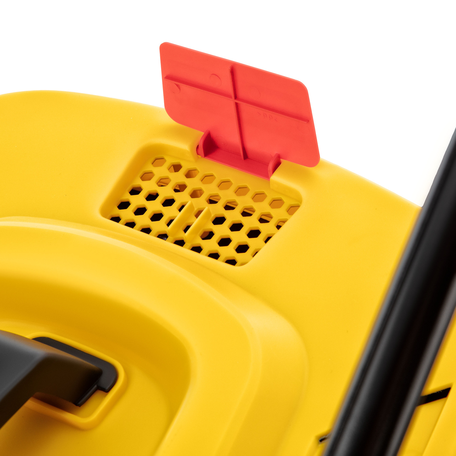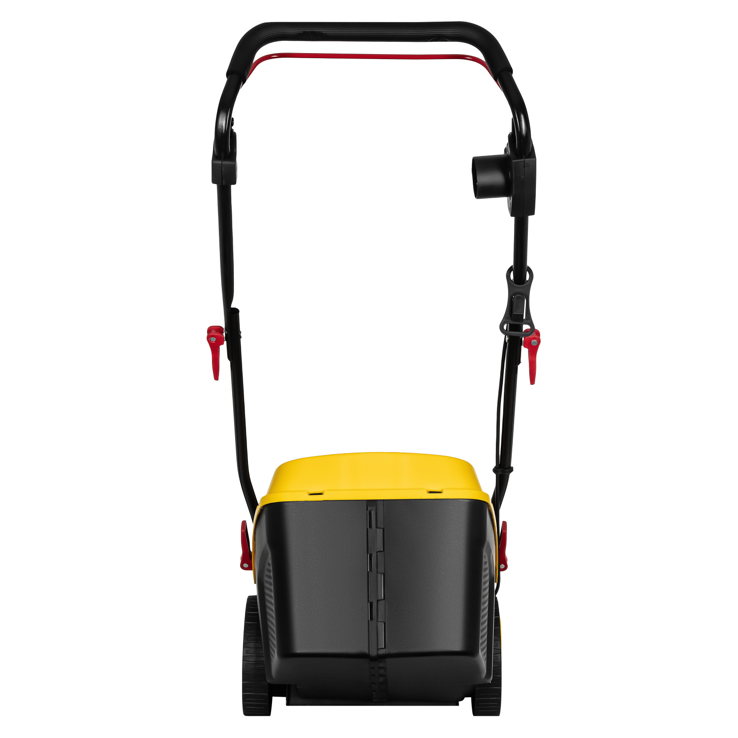 Корпус газонокосарки виготовлено з міцного пластику, стійкого до механічних навантажень. Руків’я та травозбірник можна зняти, що значно спрощує зберігання і транспортування інструмента. Вага моделі становить 12,7 кг, завдяки чому газонокосарка залишається маневреною та зручною за використання навіть в обмеженому просторі. Колеса різного діаметра – 150 мм спереду та 200 мм ззаду – сприяють стабільному руху нерівною поверхнею.
