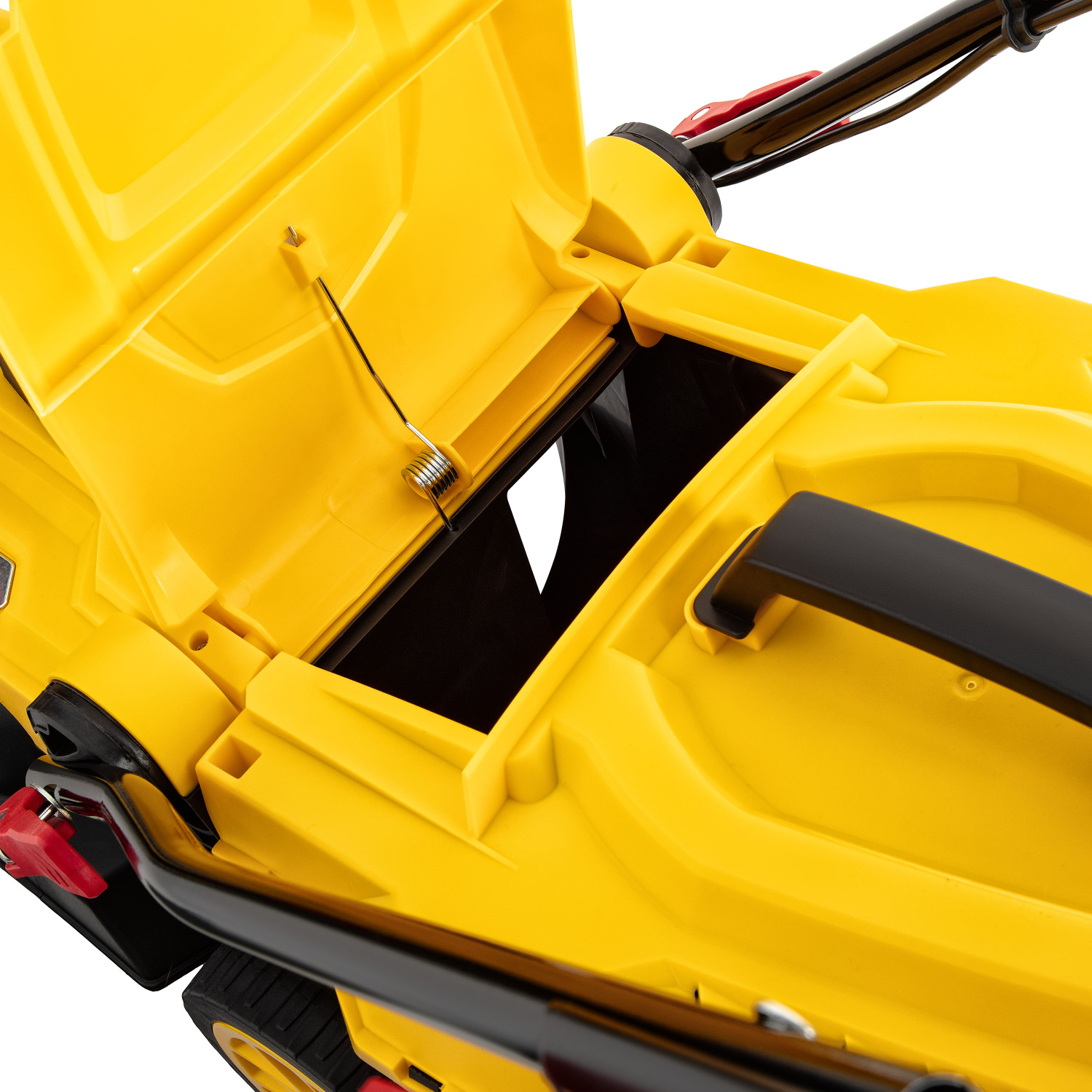 Пластиковий травозбірник об’ємом 40 л вміщує значну кількість скошеної трави, мінімізуючи потребу в частому спорожненні. Такий формат особливо зручний для ділянок середнього розміру, адже допомагає зберігати охайний вигляд газону під час скошування.