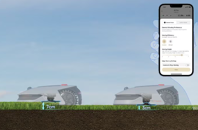 У додатку Dreamehome можна самостійно задати точну висоту стрижки, адаптуючи до сезону чи особистих уподобань. Це зручно, якщо хочеться влітку залишити газон вищим для збереження вологи, а восени — знизити рівень для чистоти. Налаштування відбувається в кілька кліків — без механічного втручання. Діапазон налаштувань відповідає основним стандартам газонної стрижки, підходить для декоративного покриття чи спортивного використання.